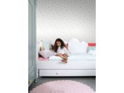 Bílá vliesové tapety na zeď, hvězdičky v odstínech zlato-béžové a šedé. Hvězdičky 0,7 - 1,2cm. Foto interiéru je pouze ilustrační - odlišné barvy.