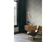 Luxusní pololesklá vliesové tapety s vinylovém povrchem, krémové podklad, motivy listů v odstínech pololesklé šedé a krémové. Foto interiéru je pouze ilustrační - odlišné barvy.