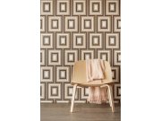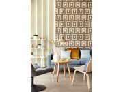 Šedá vliesové tapety na zeď se stříbrným leskem a geometrickým vzorem v hnědé barvě.