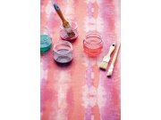Abstraktní vzory v růžové, fialové a cihlové barvě na vliesové tapetě.