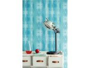 Abstraktní vzory v tyrkysovéch, modrých a zelených odstínech na vliesové tapetě.