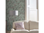 Vliesové tapety s růžovémi květy a ptáčky na světle zeleném hladkém podkladu. Co vás zaujme: vyrobeno s ohledem na udržitelnost a ekologii. Design: romantický, přírodní. Úroveň tapetovéní: pro začátečníky. Země původu: Velká Británie.
