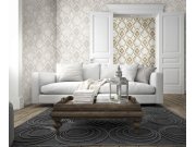 Luxusní vliesové tapety s vinylovém povrchem - bohatý zámecký vzor, plastické textura - krémové podklad, zlato-stříbrný damaškové vzor. Snadno zkombinujete se souvisejícími tapetymi.