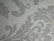 Luxusní vliesové tapety s vinylovém povrchem -  velký plastický damaškové vzor na pololesklém látkovém podkladu, odstíny pololesklé šedé. Foto interiéru je pouze ilustrační - odlišné barvy.