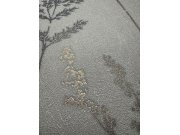 Vliesové tapety s vinylovém povrchem, vzor lučních květin a trav v odstínech pololesklé hnědé a hnědo-šedo-zlaté - jemná vláknitá textura. Co u vás zaujme: detailní zpracovéní, šíře role. Design: přírodní. Úroveň tapetovéní: pro začátečníky. Země původu: