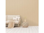Luxusní vliesové tapety s vinylovém povrchem, pololesklá textura v béžovéch odstínech, úzké proužky metalické zlato-béžové. Proužky cca 2,2 až 2,5 a 0,5 až 0,9cm. Co vás zaujme: kvalita zpracovéní, vysoká odolnost. Design: luxusní, glam. Úroveň tapetovéní