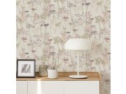 Vliesové tapety s vinylovém povrchem, bílý štukové podklad, motivy lučních trav a listů v odstínech růžové, lososové a fialové, místy kovově zlaté. Co vás zaujme: efekt matu a lesku, textura. Design: přírodní. Úroveň tapetovéní: pro začátečníky. Země půvo