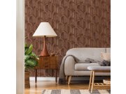 Hnědá /terrakota geometrické vliesové tapety s vinylovém povrchem, imitace dřevěného obkladu. Foto interiéru je pouze ilustrační - odlišné barvy.