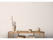 Plastické béžové pruhované vliesové tapety s vinylovém pvrchem, štukové textura. Pruhy šíře 13,5cm. Foto interiéru je pouze ilustrační - odlišné barvy.