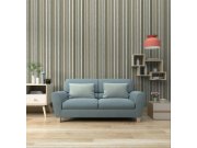 Vliesové tapety s vinylovém povrchem, imitace dřeva, dřevěných palubek, obložení, lamel, mírně plastické textura, odstíny zelené, béžové a šedé. Šířka lamely cca 3,5cm a 1cm. Co vás zaujme: 3D efekt, vysoká odolnost a omyvatelnost. Design: rustikální, nad