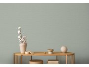Jemně plastické, pruhovaná, zelená a šedá, vliesové tapety s vinylovém povrchem, místy metalické stříbrné odlesky.