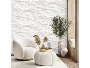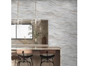 Luxusní pololesklá vliesové tapety s vinylovém povrchem, krémovo-stříbrný mramor. Foto interiéru je pouze ilustrační - odlišné barvy.