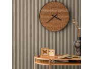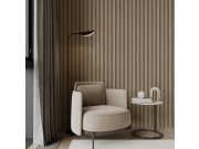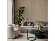 Luxusní vliesové tapety s vinylovém povrchem, odstíny pololesklé hnědo-béžové, stínované proužky s prostorovém efektem a efektem prošívání. Pruhy cca 3 cm, 1,6 cm a 1 cm. Co vás zaujme: kvalita zpracovéní, vysoká odolnost. Design: luxusní, glam. Úroveň ta