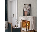 Plastické vliesové tapety s vinylovém povrchem, šedý podklad, šedo-béžové vzor, šedo-stříbrné obrysy. Foto interiéru je pouze ilustrační - odlišné barvy.