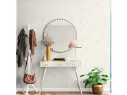 Vliesové tapety na zeď s vinylovém povrchem v bílých odstínech s imitací stěrky.