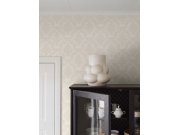 Luxusní vliesové tapety s vinylovém povrchem - bohatý zámecký vzor, plastické textura v metalických odstínech krémové, šedo-béžové a zlaté, drobné zlaté třpytky. Snadno zkombinujete se souvisejícími tapetymi. Foto interiéru je pouze ilustrační - odlišné b