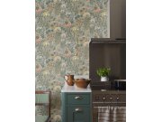 Vliesové tapety na zeď, bohatý vzor s větvičkami granátovníku a ptáčky, odstíny modro-zelené, růžové a oranžové, šedo-bílý podklad. Co u vás zaujme: kolekce vytvořená ikonou světového designu. Design: nadčasové, přírodní. Úroveň tapetovéní: pro začátečník