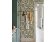 Vliesové tapety na zeď, šedý podklad, pestrá paleta květin, jahody a ostružiny, odstíny zelené, žluté, červené, modré a okrové. Co vás zaujme: vyrobeno s ohledem na udržitelnost a ekologii. Design: přírodní. Úroveň tapetovéní: pro začátečníky. Země původu