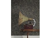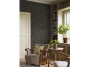 Černá vliesové tapety se secesním květinovém vzorem v odstínech zelené, béžové a hnědé.