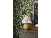 Vliesové tapety na zeď „V dubu“ na béžovém lněném pozadí, které kontrastuje s tmavě zelenými a hnědými tóny vzoru flóry a fauny, je moderní interpretací středověkých tapiserií a vzorů Arts and Crafts. Co vás zaujme: vyrobeno s ohledem na udržitelnost a ek