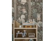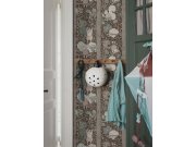 Vliesové tapety na zeď, hnědý podklad, dětský motiv hravých veverek na stromech, odstíny jemně pastelové zelené, béžové a hnědé. Co vás zaujme: vyrobeno s ohledem na udržitelnost a ekologii. Design: dětský. Úroveň tapetovéní: pro začátečníky. Země původu: