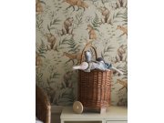 Barevnost je příjemná a uklidňující – jemné zelené, béžové, modré i hnědé tóny vytvářejí harmonickou atmosféru, která podporuje dětskou představivost a zároveň neruší při usínání. Tapety se hodí do dětského pokojíčku, herny i koutku na hraní – a porostou s vaším dítětem.
