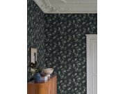 Černá vliesové tapety na zeď, květinové vzor v zelené, fialové, hnědé a růžové.