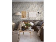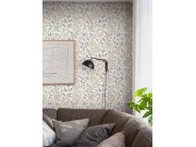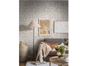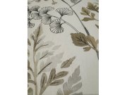 Béžové vliesové tapety s květinovém vzorem v odstínech hnědé, béžové, šedé a šedo-zelené.