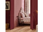 Jemně plastické pruhované vliesové tapety v retro stylu, odstíny růžové, místy červené linie. Foto interiéru je pouze ilustrační - odlišné barvy.