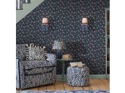 Vliesové tapety na zeď, tmavě modrý podklad, pestrá paleta květin, jahody a ostružiny, odstíny zelené, modré, růžové, žluté, červené. Co vás zaujme: vyrobeno s ohledem na udržitelnost a ekologii. Design: přírodní. Úroveň tapetovéní: pro začátečníky. Země