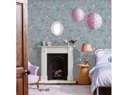 Vliesové tapety na zeď, modrý podklad, motiv květin a motýlů v odstínech zelené, červené, růžové, modré. Co vás zaujme: vyrobeno s ohledem na udržitelnost a ekologii. Design: klasický, květinové, vintage. Úroveň tapetovéní: pro začátečníky. Země původu: V