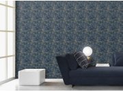 Luxusní modrá vliesové tapety s vinylovém povrchem, motivy listů v odstínech bronzové.