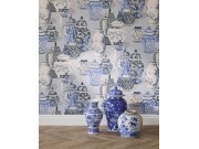 Vliesové tapety na zeď, motivy historických nádob v odstínech šedé a modré, místy jemný modrý pololesk. Co vás zaujme: příjemná textura. Design: netradiční, zámecký. Úroveň tapetovéní: pro začátečníky. Země původu: Holandsko.