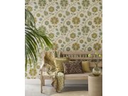 Vliesové tapety s vinylovém povrchem, látkové textura, béžové podklad, květinové ornamentální vzor v odstínech zelené, khaki a béžové. Co vás zaujme: kvalita zpracovéní, odolnost. Design: přírodní. Úroveň tapetovéní: pro začátečníky. Země původu: Holandsk