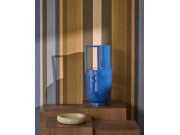 Vliesové tapety s vinylovém povrchem, látkové textura s pruhy v odstínech modré, šedé, hnědé. Pruhy 2,1; 2,6; 3,8; 7,7; 9,2 cm. Co vás zaujme: autentický vzhled. Design: klasický. Úroveň tapetovéní: pro začátečníky. Země původu: Holandsko.