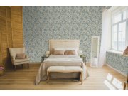 Luxusní vliesové tapety s vinylovém povrchem, světle modrý/tyrkysové podklad s látkovou texturou, květinové motiv v odstínech zelené, béžové a lila. Co vás zaujme: kvalita zpracovéní, odolnost. Design: přírodní, romantický. Úroveň tapetovéní: pro začátečn
