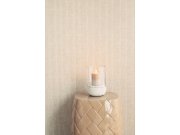 Jemně strukturované vliesové tapety na zeď, imitace tvídové pruhované látky, odstíny pískové / šedo-béžové, metalické odlesky. Pruhy cca 6-7 cm. Foto interiéru je pouze ilustrační - odlišné barvy.