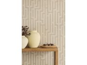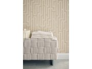 Luxusní vliesové tapety s vinylovém povrchem, geometrické vzory, látkové textura, béžové pololesk. Foto interiéru je pouze ilustrační - odlišné barvy.