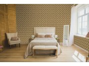 Luxusní vliesové tapety s vinylovém povrchem, béžové geometrické vzory, látkové textura, šedo-hnědý pololesk.