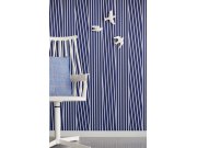 Současné trendy nadčasovém pruhům a proužkům přejí. Jsou kombinovatelné se vzorovémi i jednobarevnými tapetymi, nebo samostatně dokáží vymezit a zútulnit prostor. Netradiční modro-bílá proužkované vliesové tapety.