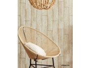 Dřevo je přírodní materiál, ze kterého dýchá krása, elegance a pohoda. Design dřeva zútulní každý interiér. Imitace bílo-béžovéch palubek se zlatými detaily na vliesové tapetě na zeď.