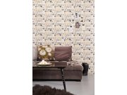 Vliesové, bílo-černá geometrické tapety na zeď doplněná odstíny šedé, hnědé a růžové barvy.