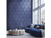 Luxusní modro-stříbrná vliesové tapety s vinylovém povrchem, květinové ornamentální vzor. Foto interiéru je pouze ilustrační - odlišné barvy.