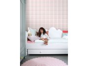 Vliesové tapety na zeď, vzor káro v odstínech růžové, šedé a bílé.
