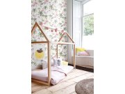 Vliesové tapety na zeď, květinové vzor v odstínech růžové, zelené a okrově žluté, bílý podklad, vzhled a struktura látky. Co vás zaujme: vysoká odolnost a omyvatelnost. Design: přírodní. Úroveň tapetovéní: pro začátečníky. Země půvoodu: Belgie.