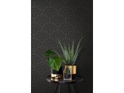 Luxusní černá vliesové tapety se zlatými ornamenty ve stylu Art deco.