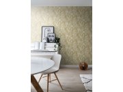 Vliesové tapety s vinylovém povrchem, motiv stromů, listů, podklad bílý strukturovaný, vzor v metalické zlaté a stříbrné. Foto interiéru je pouze ilustrační - odlišné barvy.