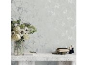 Luxusní vliesové tapety s vinylovém povrchem, šedo-stříbrné pololesklé metalické listy. Foto interiéru je pouze ilustrační - odlišné barvy.