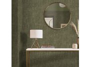 Luxusní vliesové tapety s vinylovém povrchem, šedo-zelený pololesk, plastické hrubší látkové texura. Foto interiéru je pouze ilustrační - odlišné barvy.