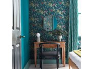 Vliesové tapety na zed, modrý podklad imitující látkovou texturu, motivy listů a plodů. Co vás zaujme: netradiční přírodní motivy. Design: nadčasové. Úroveň tapetovéní: pro začátečníky. Země původu: Velká Británie.